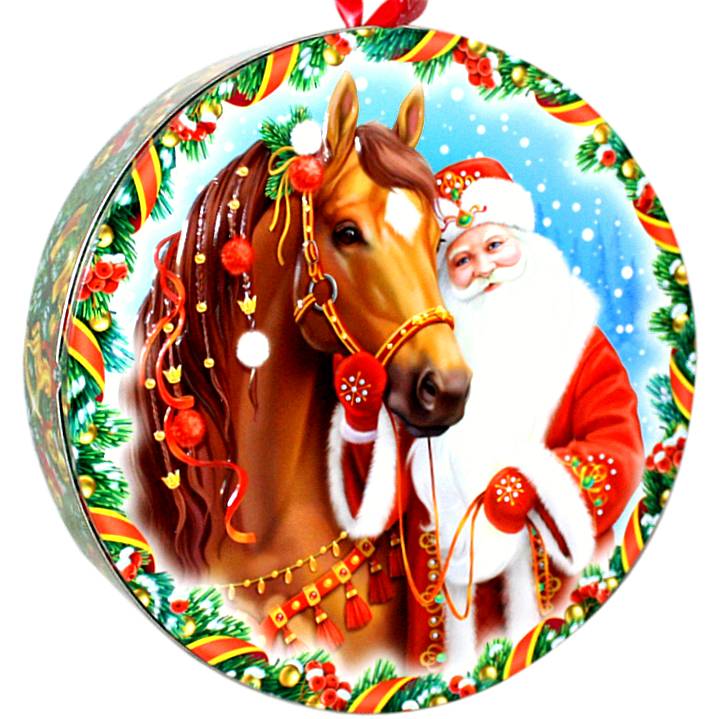 Детский новогодний подарок в жестяной упаковке весом 830 грамм