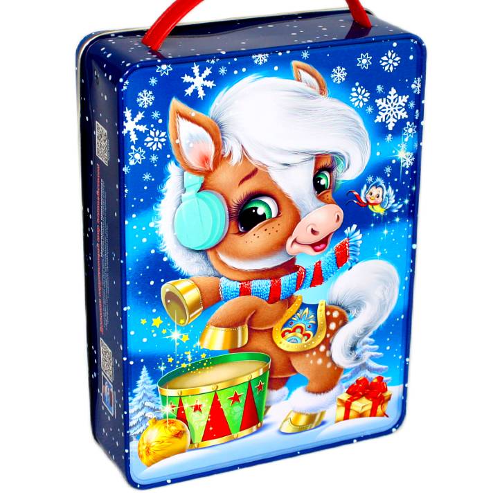 Сладкий подарок на Новый Год в жестяной упаковке весом 800 грамм