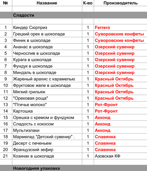 Опубликовано в Составы подарков
