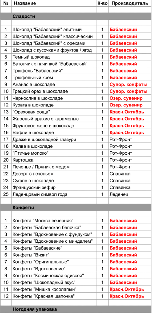 Опубликовано в Составы подарков